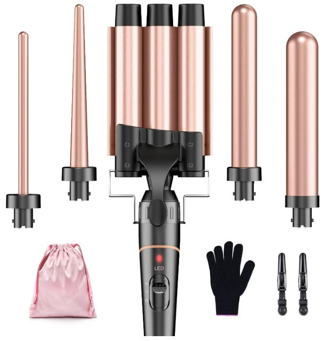 - Vielseitige Frisuren: 5 austauschbare Keramik-Ionenfässer für verschiedene Haarlängen und -stile, geeignet für mittleres, langes und kurzes Haar, um dynamische und langanhaltende Locken, Wellen und andere Stile zu kreieren.