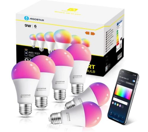 Im Preisvergleich gibt es den Aigostar Alexa Glühbirnen 6er Pack (E27 Smart Lampe, 9W) sonst ab 45,99€ – ihr spart also 23€.