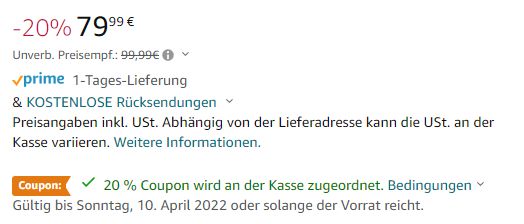 Auf den Preis kommt ihr durch den 20% Click-Coupon auf der Artikelseite.