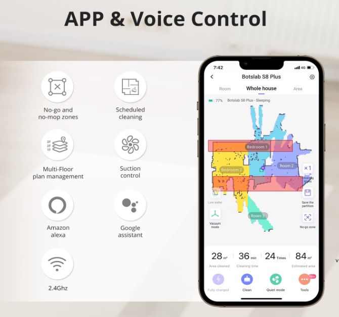 Per App oder Amazon Alexa könnt ihr den S8 Plus steuern und auch No-Go oder No-Mop Zonen einrichten bzw. Zeitpläne für die Reinigung anlegen.