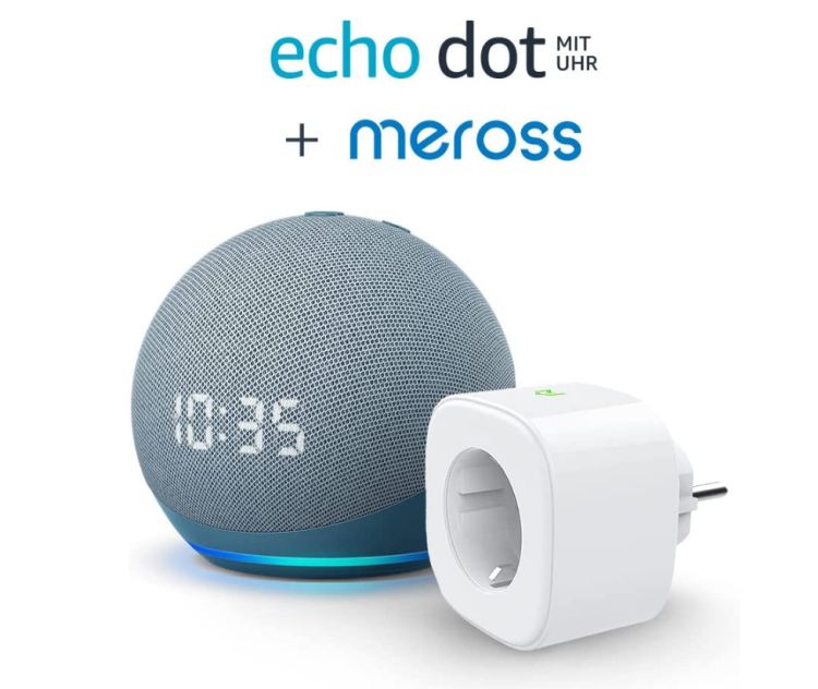 Echo Dot 4. Gen. mit Uhr + Meross Smart Plug WLAN-Steckdose bei Amzon
