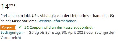 Auf den Preis kommt ihr durch einen 5€ Click-Coupon auf der Artikelseite.