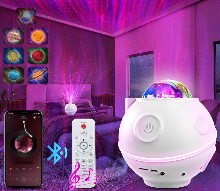 - Der Nachtlichtprojektor verfügt über einen eingebauten Lautsprecher zum Abspielen von Musik