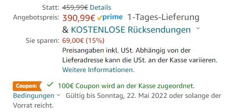 Auf den Preis gelangt ihr durch den 50% Click-Coupon auf der Artikelseite und den Einsatz des Gutscheincodes HKHVEHDV bei der Bestellung an der Kasse.
